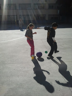 El alumnado de la seño Mª del Mar, 5º A, trabajó con los zancos.